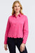 Scarlett adds a playful twist to crisp style with its charming scallop-trimmed hem, softening the classic button-front design. The slightly cropped silhouette is ideal for pairing with high-waisted pants or for those with a shorter torso. Our signature triple pleating on the cuffs brings a polished, refined touch to complete the look.