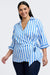Statement stripes, softened. Sadie returns in a breezy 100% Lyocell fabric, showcasing a modern take on classic stripes — varied in width for subtle dimension. A high ruffled neckline and gently cascading front placket strike just the right balance of polish and charm. The dolphin-cut front hem and longer back add movement and versatility, perfect for wearing untucked with crisp white pants or denim.