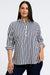 Bella does it both ways — buttoned up or casually undone. Designed with a single neckline button, this versatile style shifts from a clean keyhole silhouette to a relaxed popover in seconds. A bold stripe print plays with direction for standout dimension, while our signature triple-pleat cuffs add a tailored finish. Graphic, polished and endlessly wearable.