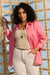 Classic tailoring meets modern artistry in Meghan. Designed with a crisp dobby stripe, it shows off a printed floral motif that captures the intricate beauty of embroidered stitching. The result? A refined yet unexpected statement piece that feels effortlessly polished, whether dressed up or down. This silhouette is where menswear-inspired style meets a feminine vibe with charm and ease.