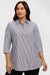 Embrace effortless style with this relaxed-fit tunic, designed to drape gracefully over your silhouette. The partially hidden placket mimics a henley style, while the full-length buttons offer the practicality you love. Take a closer look, and you'll notice each stripe is actually a pair, adding subtle sophistication. Flip up the collar and cuffs to reveal bold, solid stripes for an extra touch of flair. A decorative button placket on the back with contrasting stripes is the finishing touch and a stylish surprise.