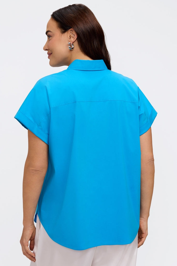 Warm-weather style gets a refined twist. Put a polished spin on your casual look with Abigail, designed with a generous, relaxed fit, a flattering dolman sleeve, and laid-back roll cuffs. A turned placket adds a clean finish up front, while slightly oversized buttons deliver a modern vibe. The back yoke creates subtle structure offset by a curved hem that beautifully tucks in or out.
