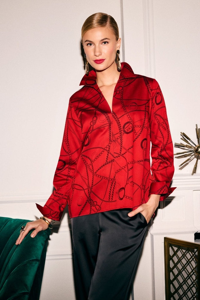 Chic meets modern in our iconic Agnes shirt, now dressed in an allover chain jacquard. The relaxed silhouette flows with ease, while the wing collar and V-neckline keep it sleek and sophisticated. Designed with thoughtful details — like a deep back pleat for shape and signature flip-back cuffs for polish — Agnes delivers effortless versatility. Bold yet timeless, it’s a piece that takes you from work to evening with confidence.