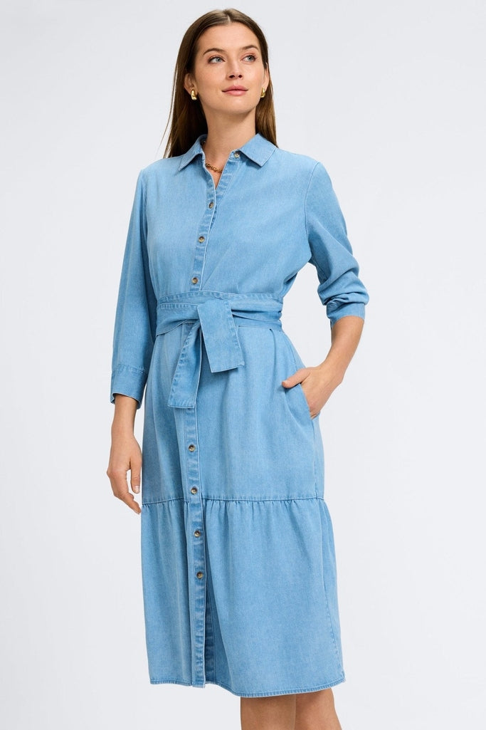 You’ve finally found it: the perfect dress for relaxed days that still call for style. Ivy is designed with a tiered skirt that adds volume and feminine flair. The button-down dress collar keeps the presentation polished while pockets and three-quarter sleeves make sure the vibe stays casual. Style the self-tie belt to your preference, whether it’s to help define your shape or to keep the silhouette feeling flowy.